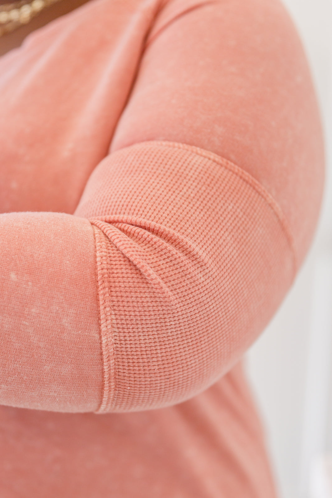 You'll find yourself always reaching for the Fun Beginnings Raglan Top In Dusty Mauve! It's cute, it's functional and it's on trend. An oversized bodice boasts a round neckline with decorative exposed seam detail and mini side slits. The long sleeves feature a drop shoulder detail with the cutest contrasting waffle fabric at the cuff and elbow. The washed effect creates a vintage inspired look you'll love!