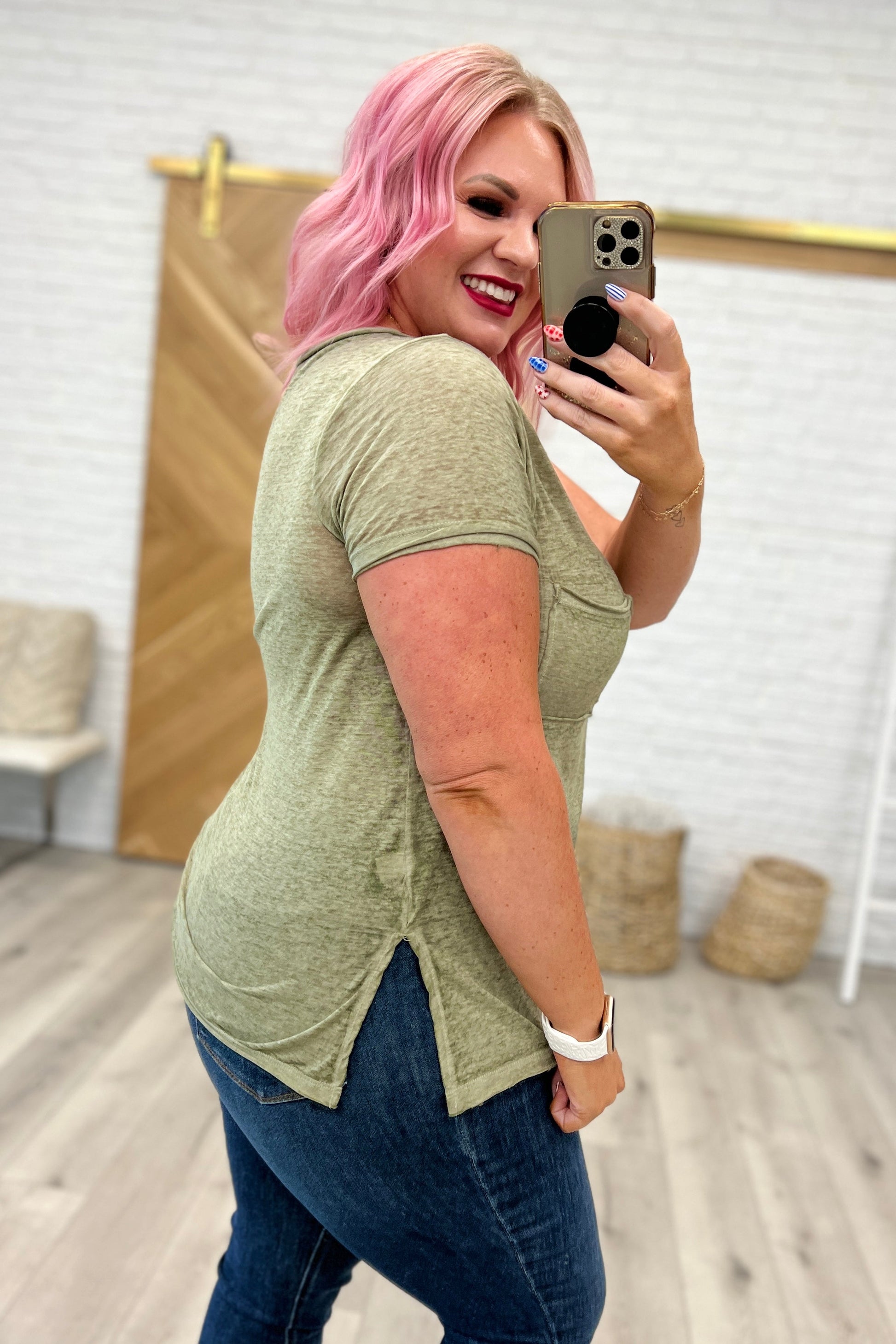 Melange Burnout V-Neck T-Shirt in Light Olive