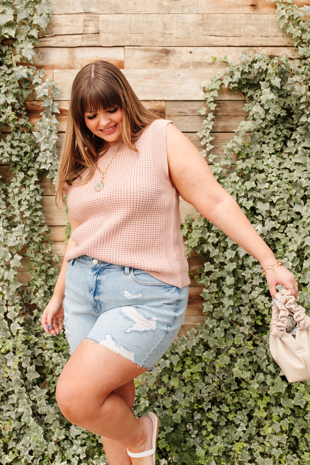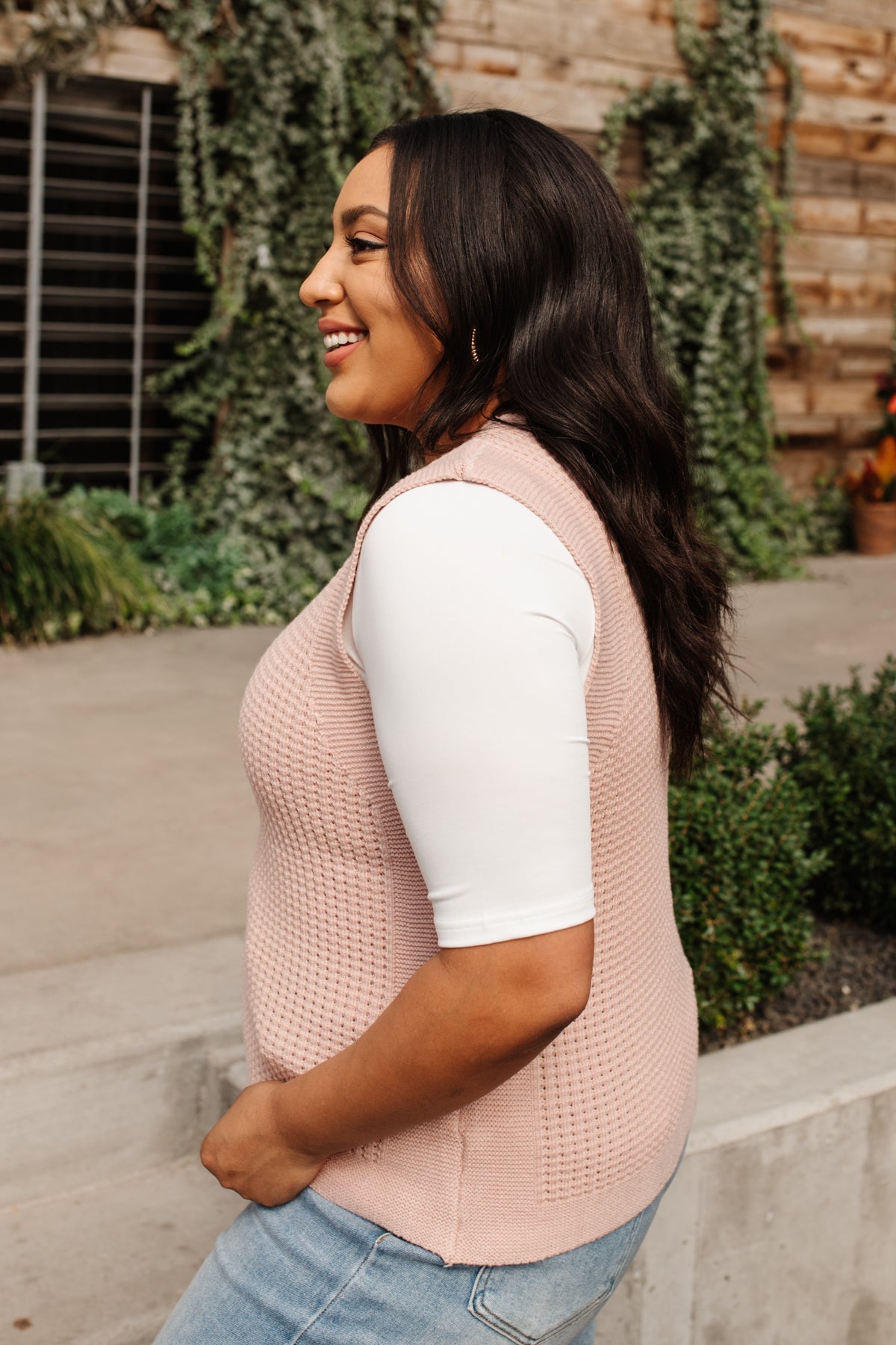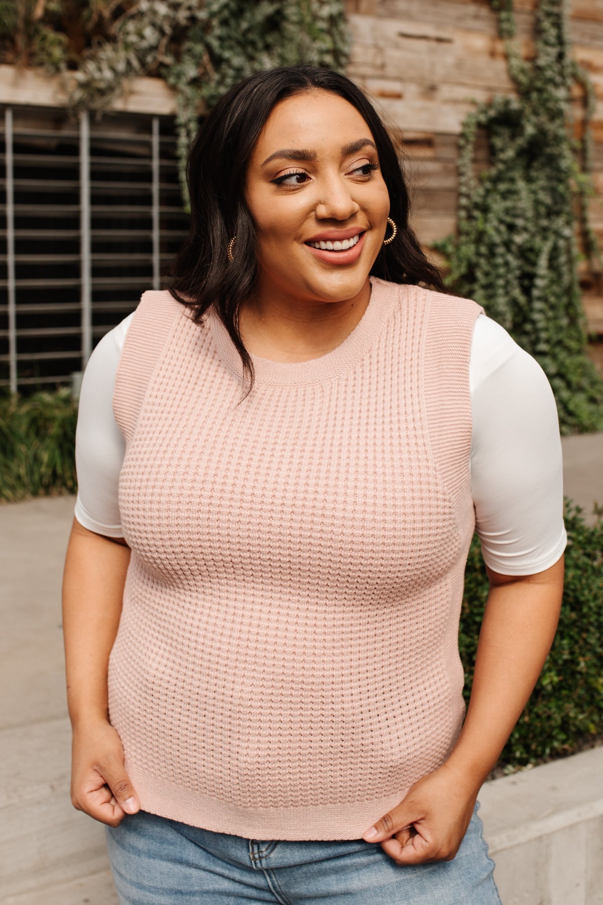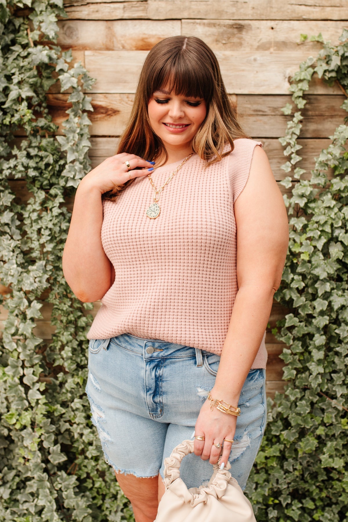 Feeling preppy in the Take A Stand Top! A pink waffle knit shapes a round neckline, and sleeveless cut, with ribbed detailing around hem and sleeves. Layer a white button up underneath, with your fav skinnies, and nude sandals, with dainty gold jewelry for a chic and preppy look!