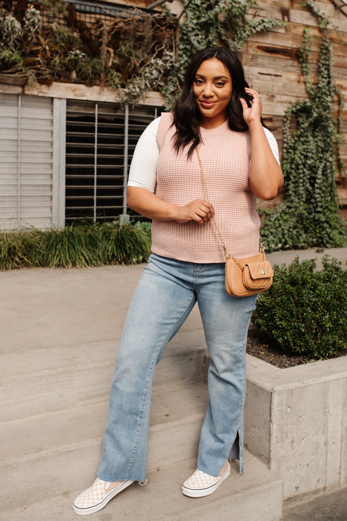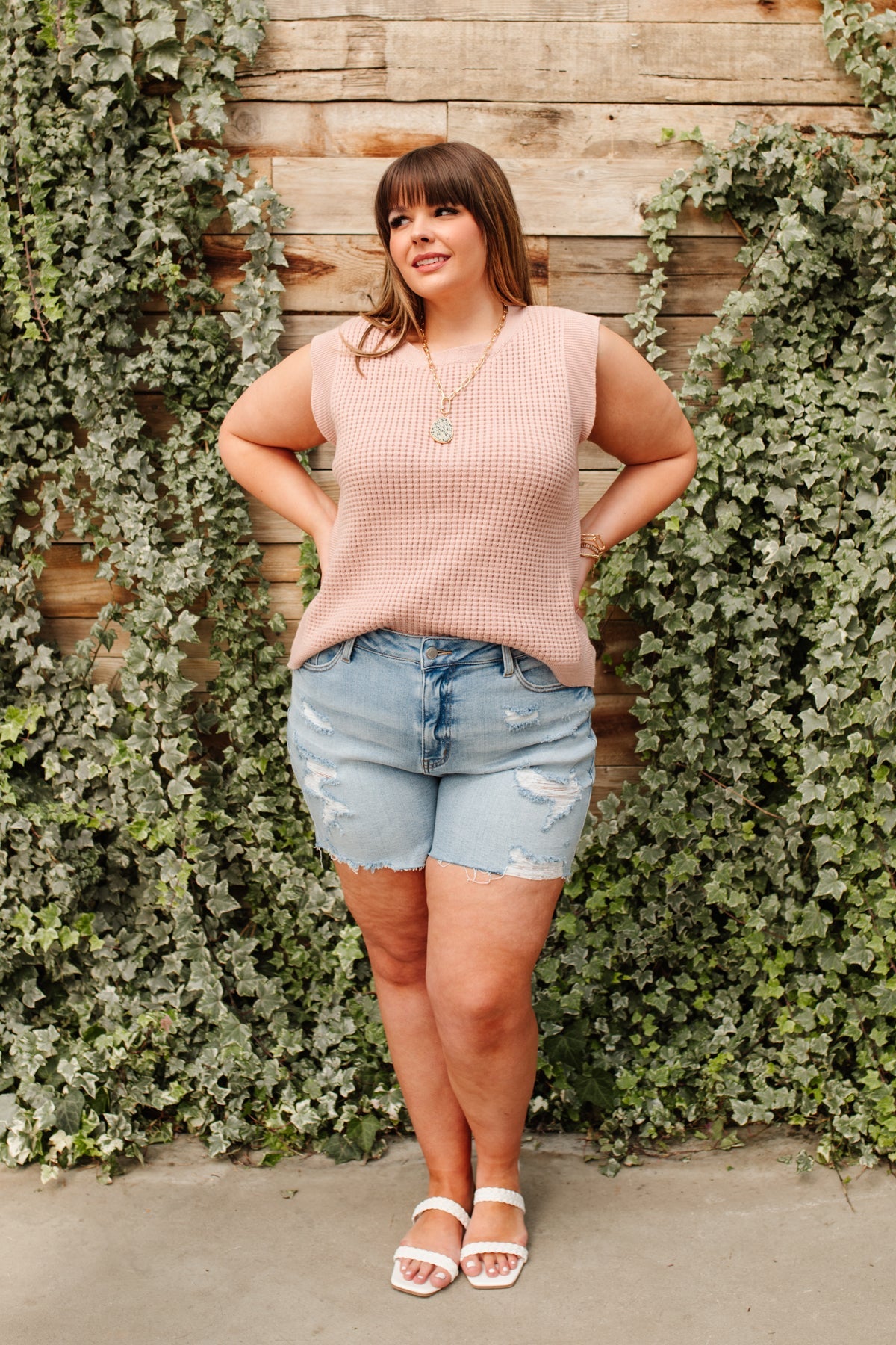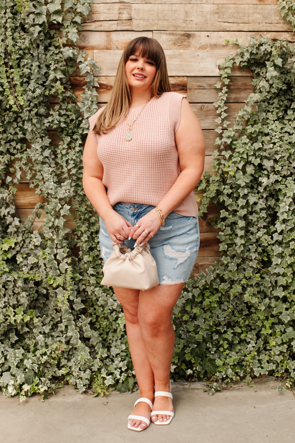 Feeling preppy in the Take A Stand Top! A pink waffle knit shapes a round neckline, and sleeveless cut, with ribbed detailing around hem and sleeves. Layer a white button up underneath, with your fav skinnies, and nude sandals, with dainty gold jewelry for a chic and preppy look!