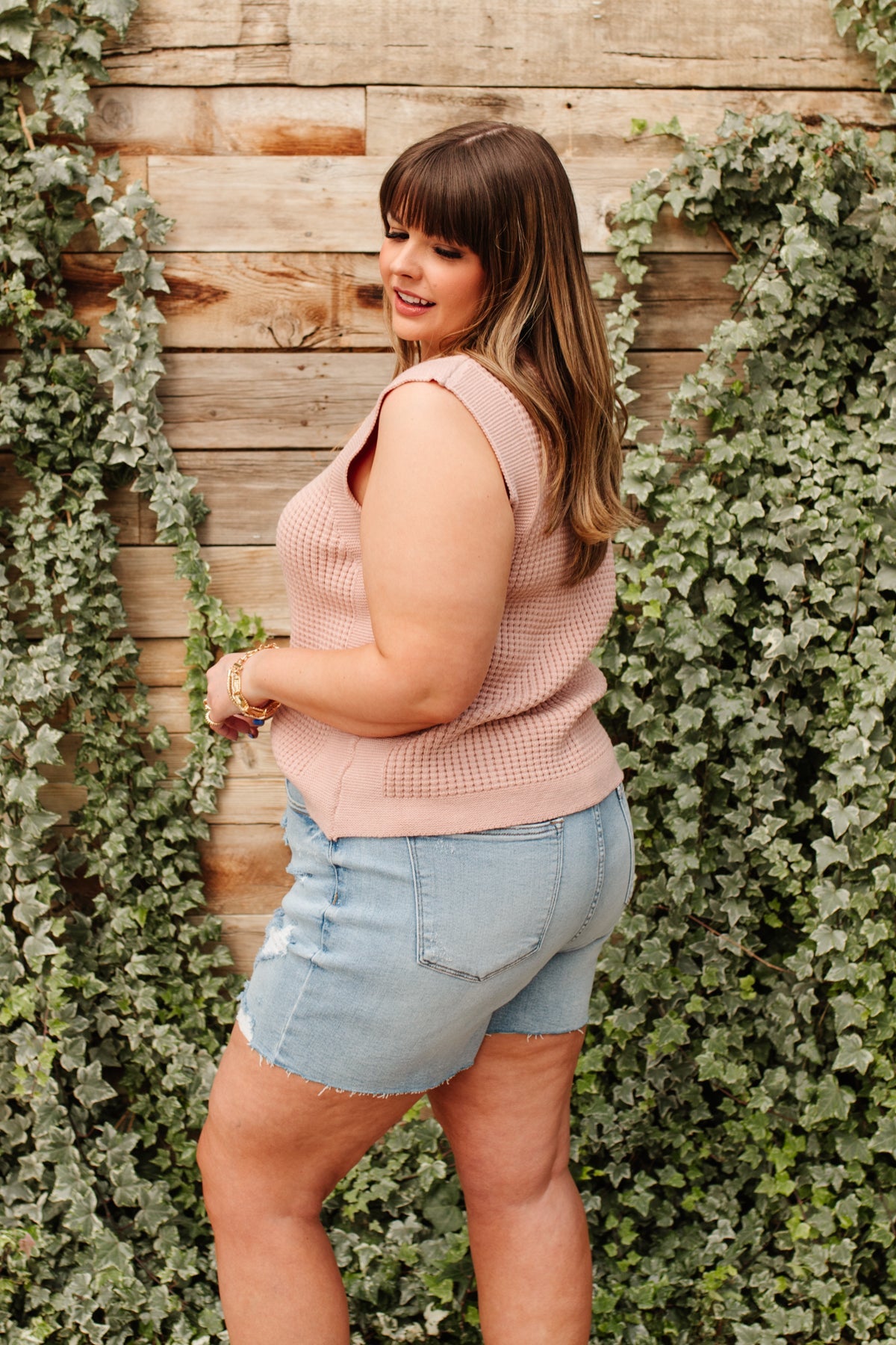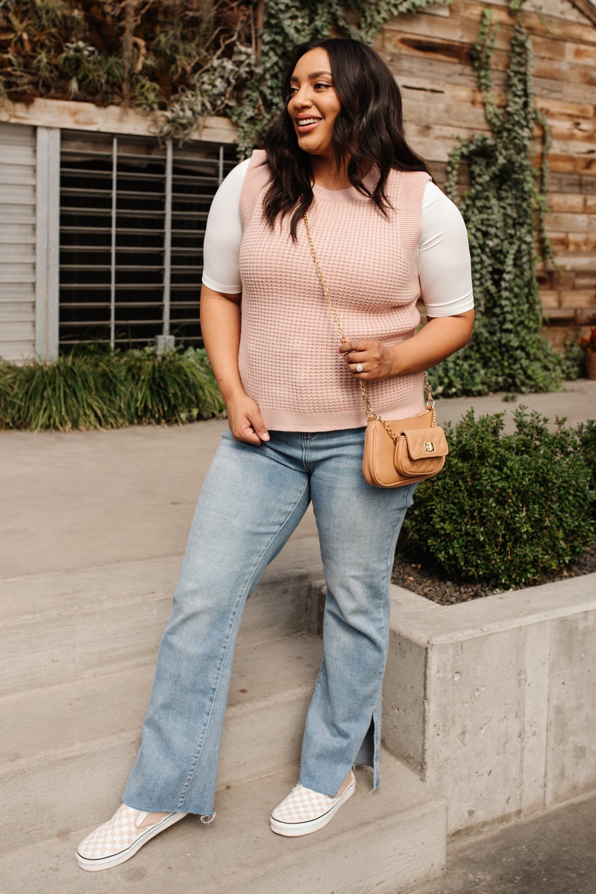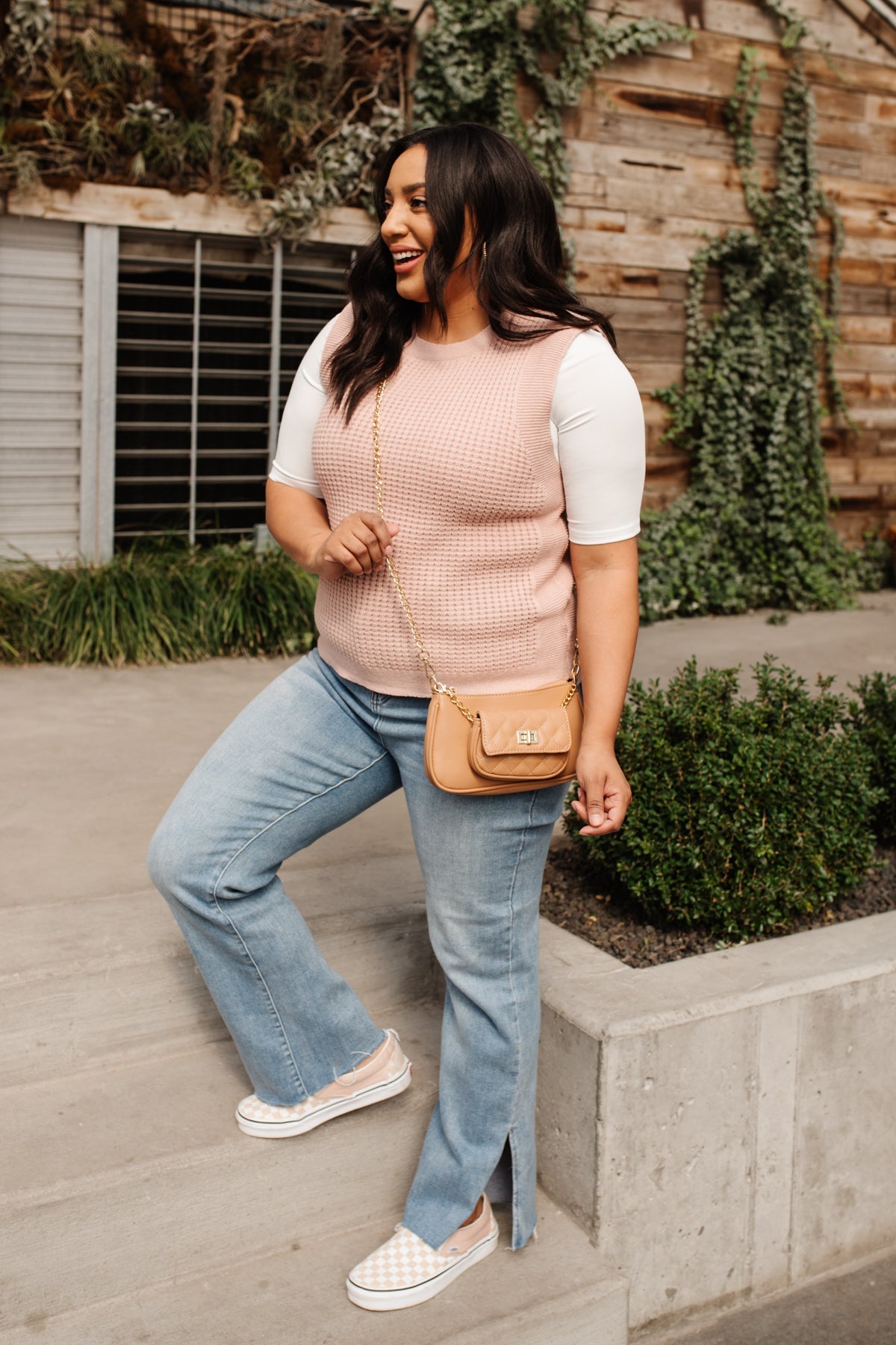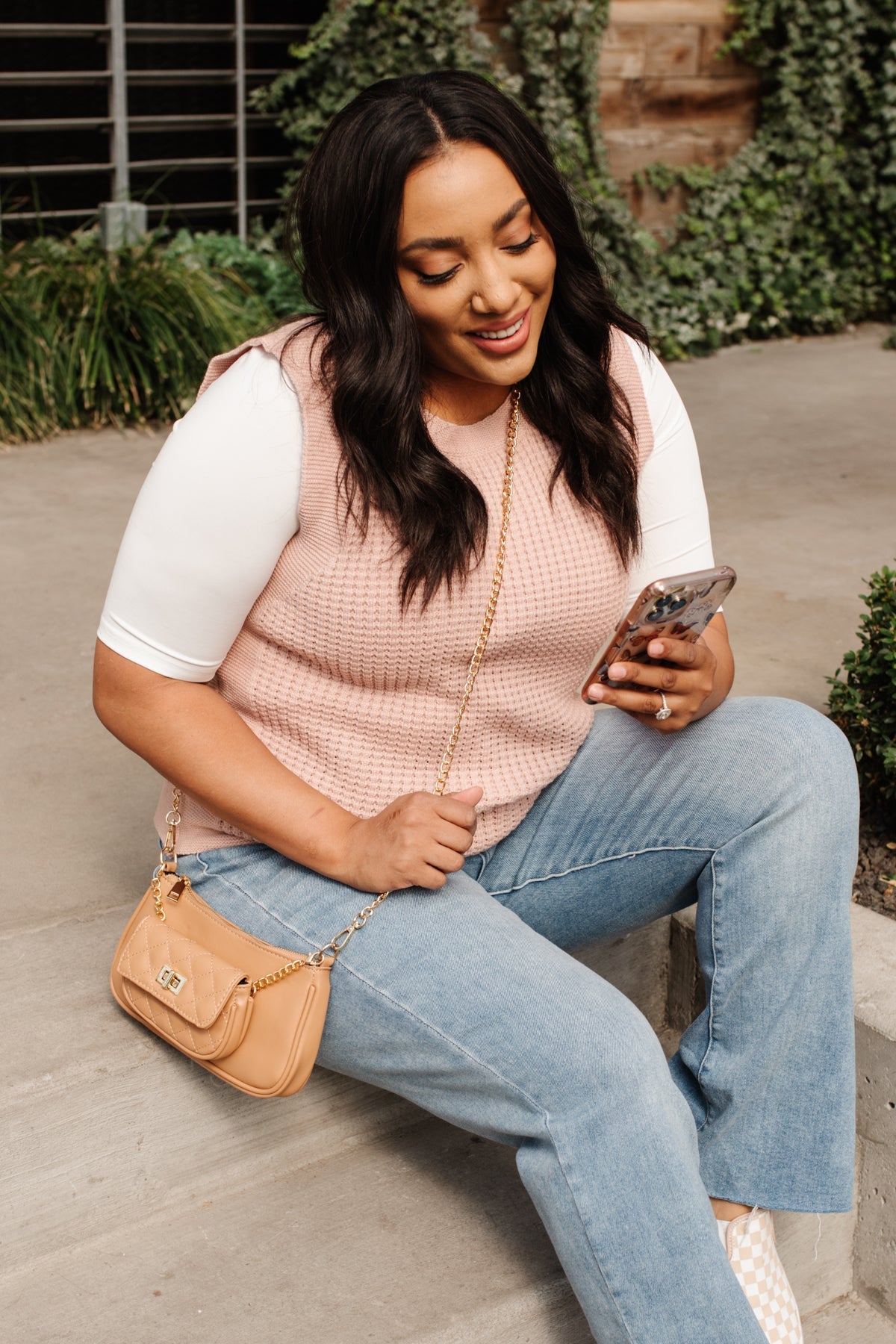Feeling preppy in the Take A Stand Top! A pink waffle knit shapes a round neckline, and sleeveless cut, with ribbed detailing around hem and sleeves. Layer a white button up underneath, with your fav skinnies, and nude sandals, with dainty gold jewelry for a chic and preppy look!